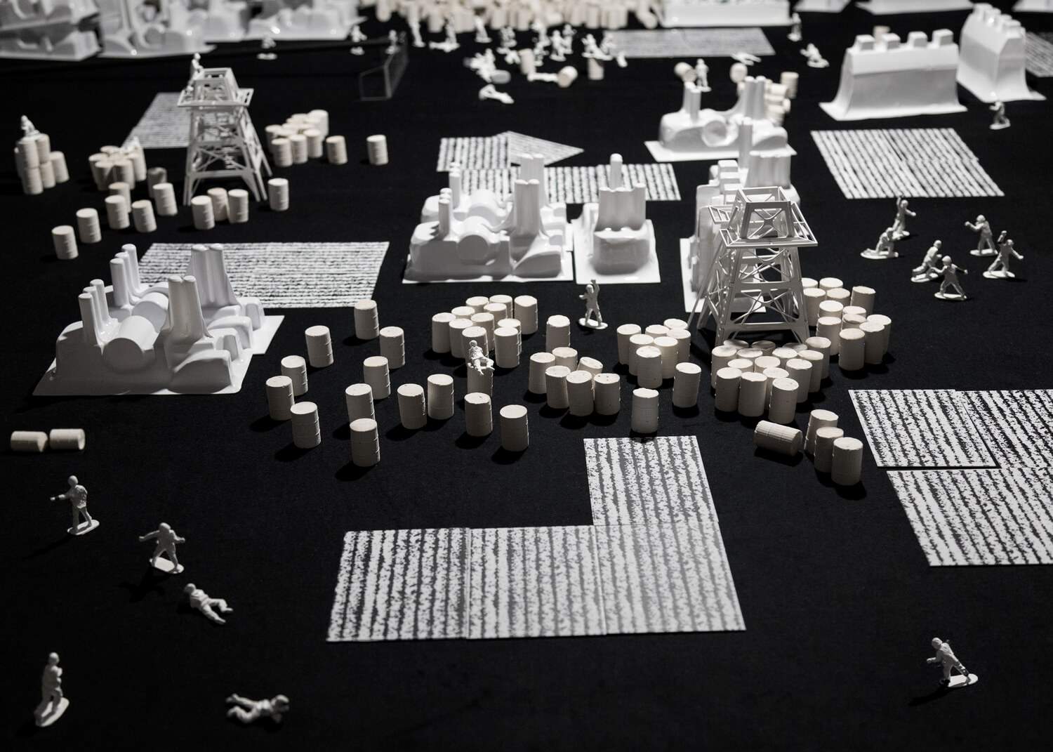 The critical approach adopted by Valentin Defaux proposes putting into perspective the complex system of modeling that laid the ground work for the Meadows report’s conclusions through a computer-assisted board game. In the wake of Guy Debord, who designed in 1977 his version of the Kriegsspiel (war game), reproducing the whole network of strategic and tactical interconnections of war following General Clausewitz’s treatise, Defaux’s own World3 Boardgame brings together all of the factors considered in the Meadows report as pieces that can be handled and moved around, including population size, volume of food production, level of industrialization, pollution control, and consumption of nonrenewable natural resources.