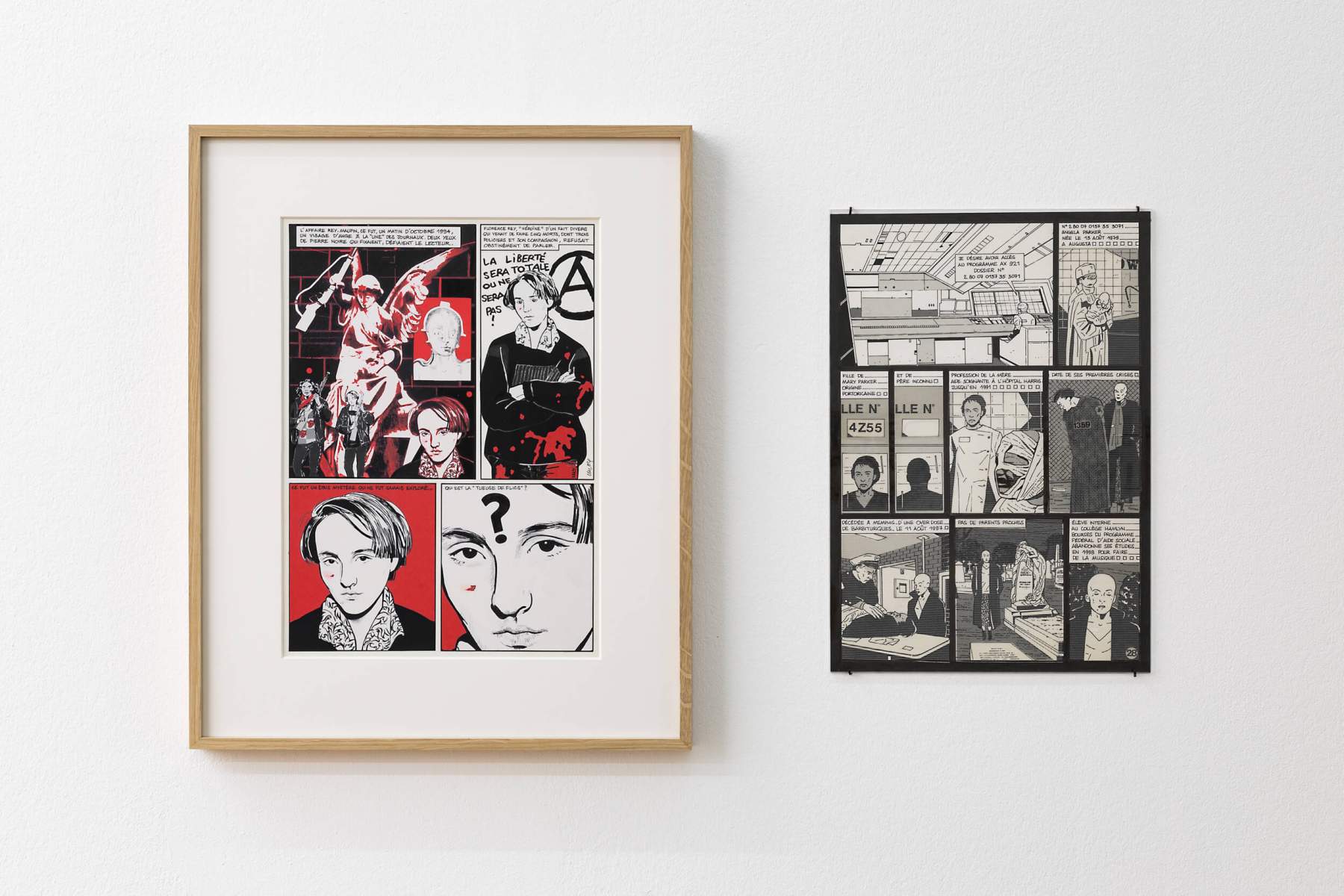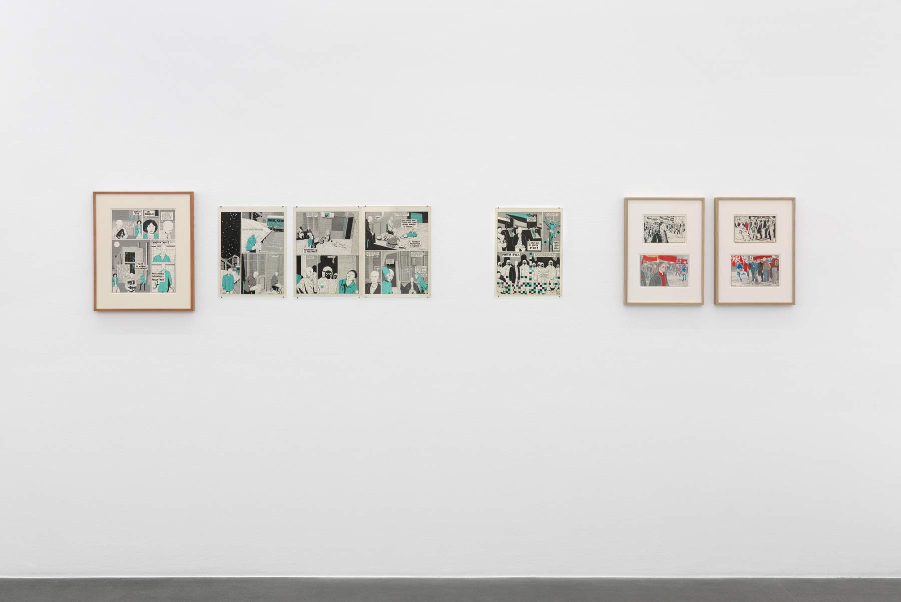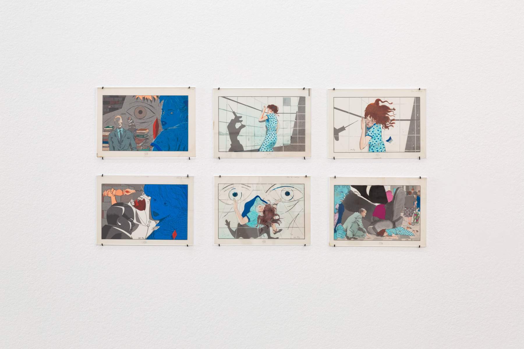 Mais si la forme de l’exposition s’est imposée, qui plus est dans le contexte d’un centre d’art contemporain, c’est aussi que l’œuvre en bande dessinée de Chantal Montellier réclame une attention accrue à la forme comme aboutissement d’une réflexion critique. Fidèle au format du 48CC, Chantal Montellier n’est pas une romancière graphique (bien qu’elle soit par ailleurs une romancière tout court), mais une artiste de la planche. Il est possible de passer à côté de son œuvre, pour peu qu’on ne soit pas sensible aux jeux savants des constructions, aux effets de rime et de symétrie, de mise en abyme multiples, bref à la dimension réflexive d’un travail qui en appelle à l’intelligence de celles et ceux qui le regardent plutôt qu’à leurs instincts consommateurs. R.B., V.G., É.M. et F.W.